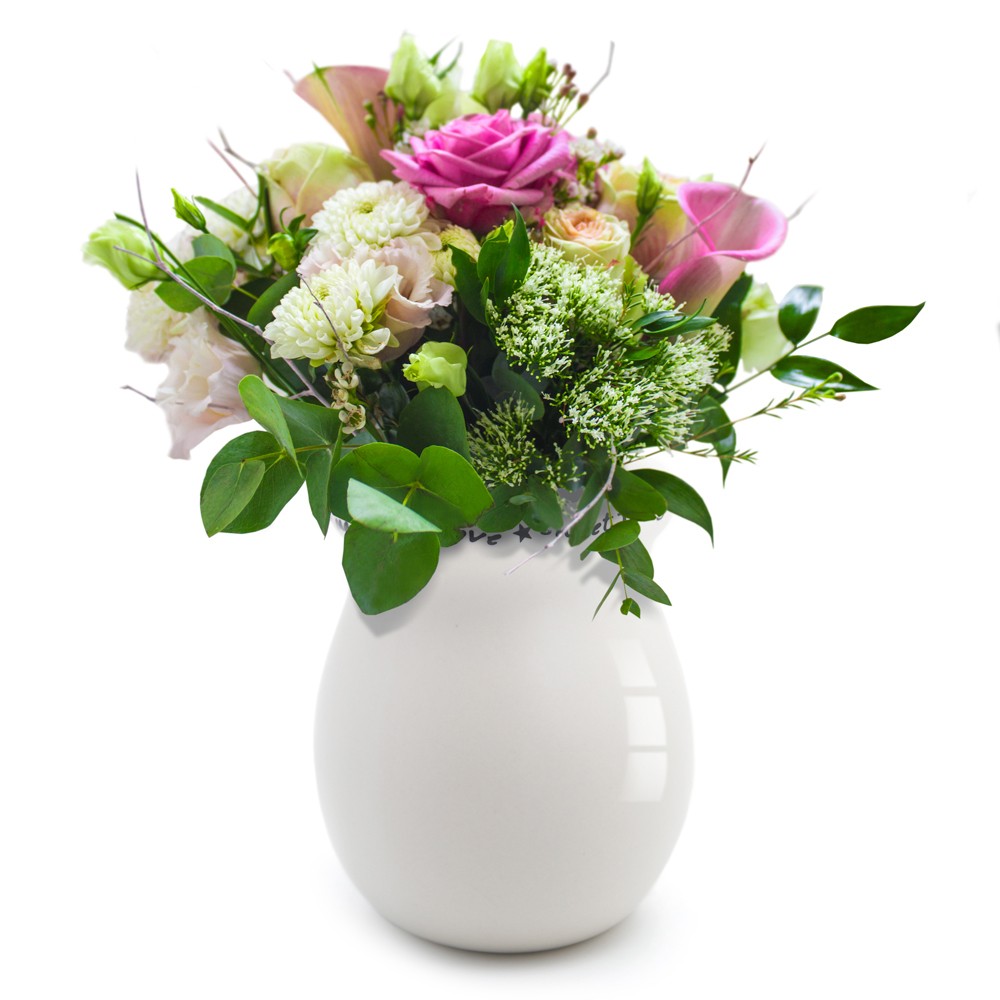 A lovely selection of pink and white flowers arranged in a beautiful vase.